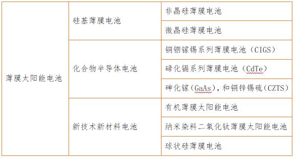 就目前研究領(lǐng)域開(kāi)發(fā)出的薄膜太陽(yáng)能電池可分成以下幾類:
