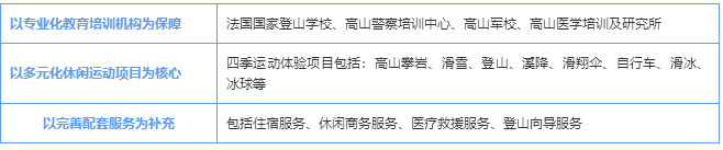 (2)沙木尼擁有完善的休閑產(chǎn)業(yè)鏈配套。向?qū)Х?wù)上,專業(yè)的向?qū)Ч緭碛谐^150名注冊(cè)職業(yè)登山向?qū)?,能為游客提供沙木尼地區(qū)的全方位攀登、滑雪服務(wù);住宿服務(wù)上,星級(jí)酒店、青年旅舍、家庭旅館、公寓、露營(yíng)營(yíng)地共有50余家,并有房屋租賃、度假中心等物業(yè)接待服務(wù)。商業(yè)服務(wù)上,共有登山、滑雪及紀(jì)念品等40余家體育用品商店,有提供沙木尼傳統(tǒng)美食和西式休閑美食的餐飲娛樂服務(wù);醫(yī)療服務(wù)上,形成“急診+醫(yī)院+研究中心”的綜合醫(yī)療服務(wù)體系,如:夏蒙尼醫(yī)院、高原生態(tài)系統(tǒng)研究中心、山地醫(yī)學(xué)培訓(xùn)與研究所;觀光交通上,纜車道于1955年正式啟用,將海拔1035米的沙木尼和海拔3842米的南針峰連接起來(lái),不但可使游客領(lǐng)略到冰雪風(fēng)景,更為登山者和滑雪者帶來(lái)了極大便捷。